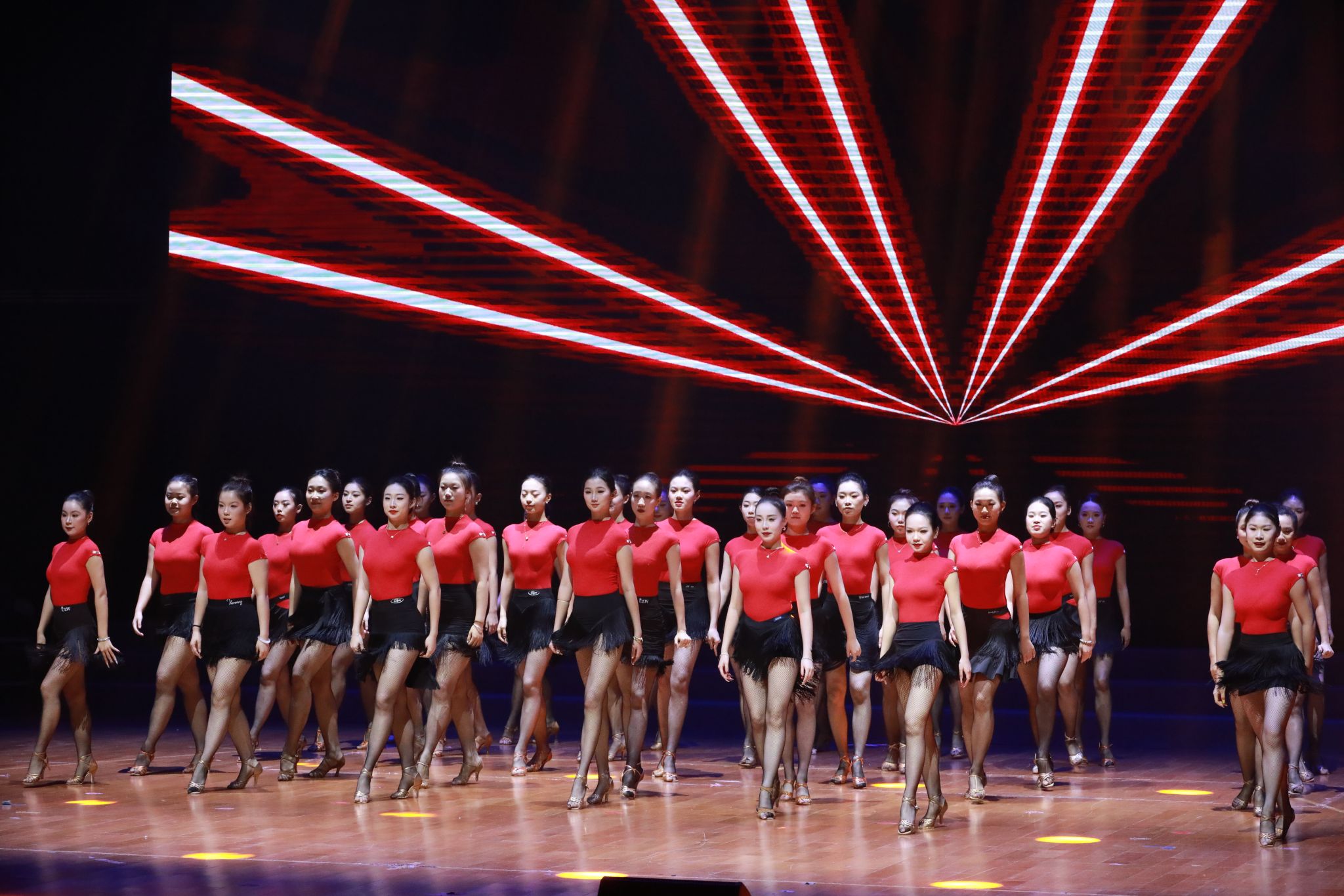 晚会最后一篇章聚焦“奋进”与“担当”,体育与艺术的碰撞点燃全场激情。体育艺术与传媒学院带来的体育舞蹈《舞力全开》动感十足,红衣黑裙尽显青春活力。