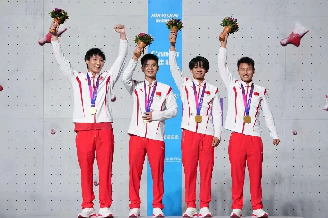王欣尚获得杭州亚运会男子攀岩团体速度接力冠军