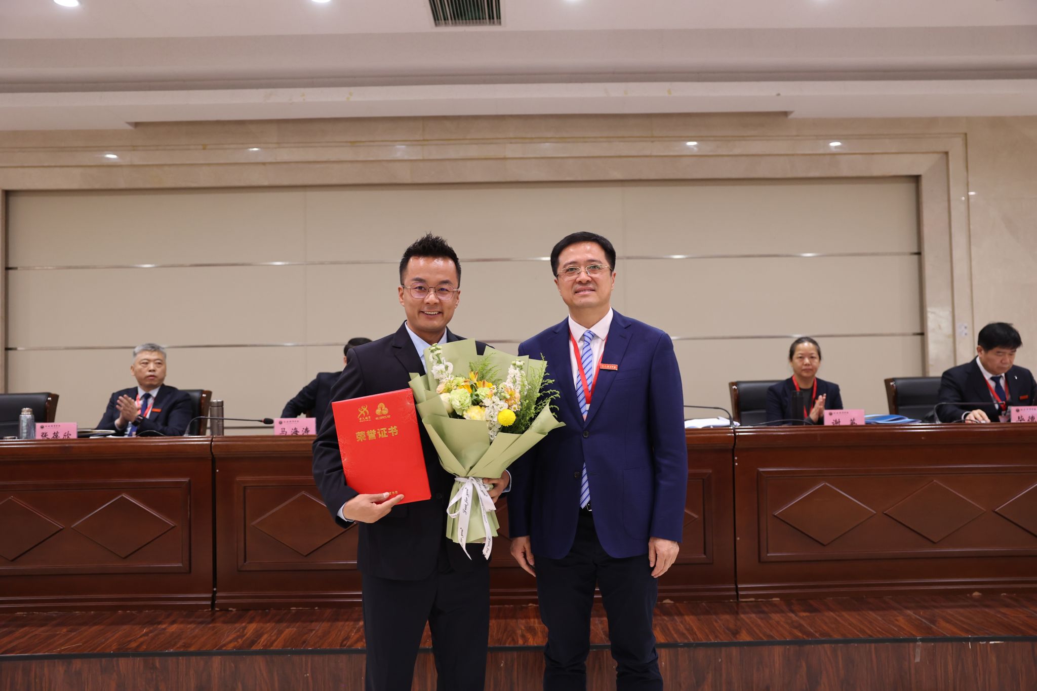 党委书记刘子实为省级人才称号获得者张葆欣、柴王军颁奖