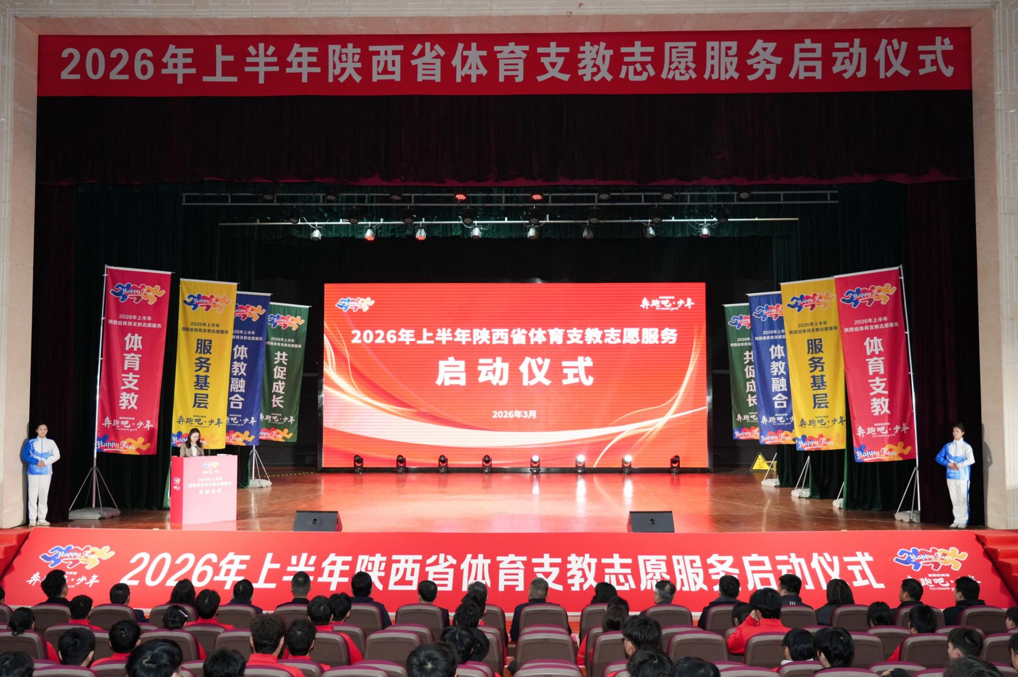 马海涛在仪式上对志愿者提出四点期望:一要坚守育人初心,做体育教育的深耕者;二要锤炼过硬本领,做全面发展的奋进者;三要严守纪律规矩,做支教风采的展示者;四要厚植家国情怀,做时代使命的践行者。他强调,志愿者应将个人理想融入国家发展与陕今年会育强省建设大局,在支教实践中深入体察国情民情,以专业能力服务基层教育。