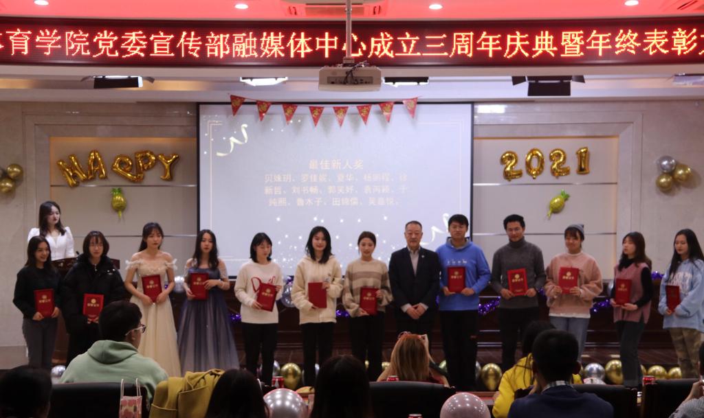 之后,党委宣传部统战事务科科长孙妍宣读了融媒体中心2020年优秀工作者表彰名单。张朝阳、孙妍、顾彬为获奖学生颁发了证书。