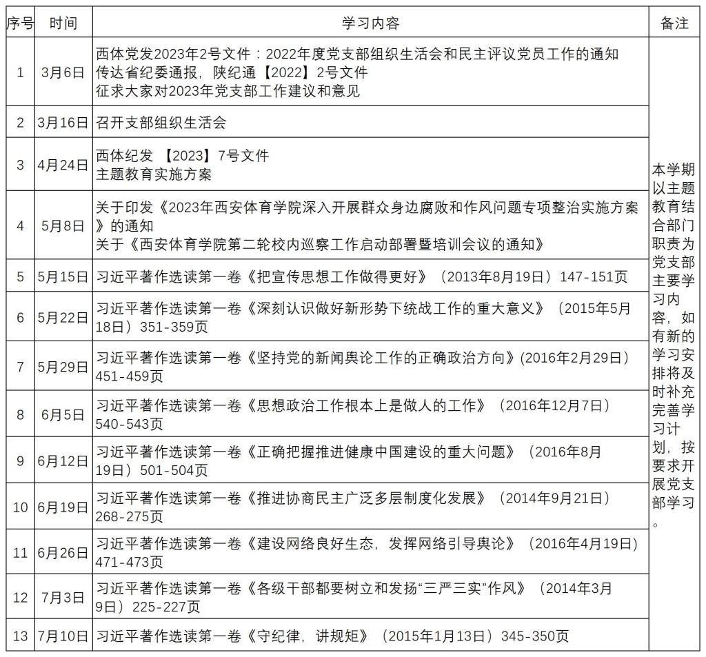 宣传(统战)党支部2023年上半年学习计划
