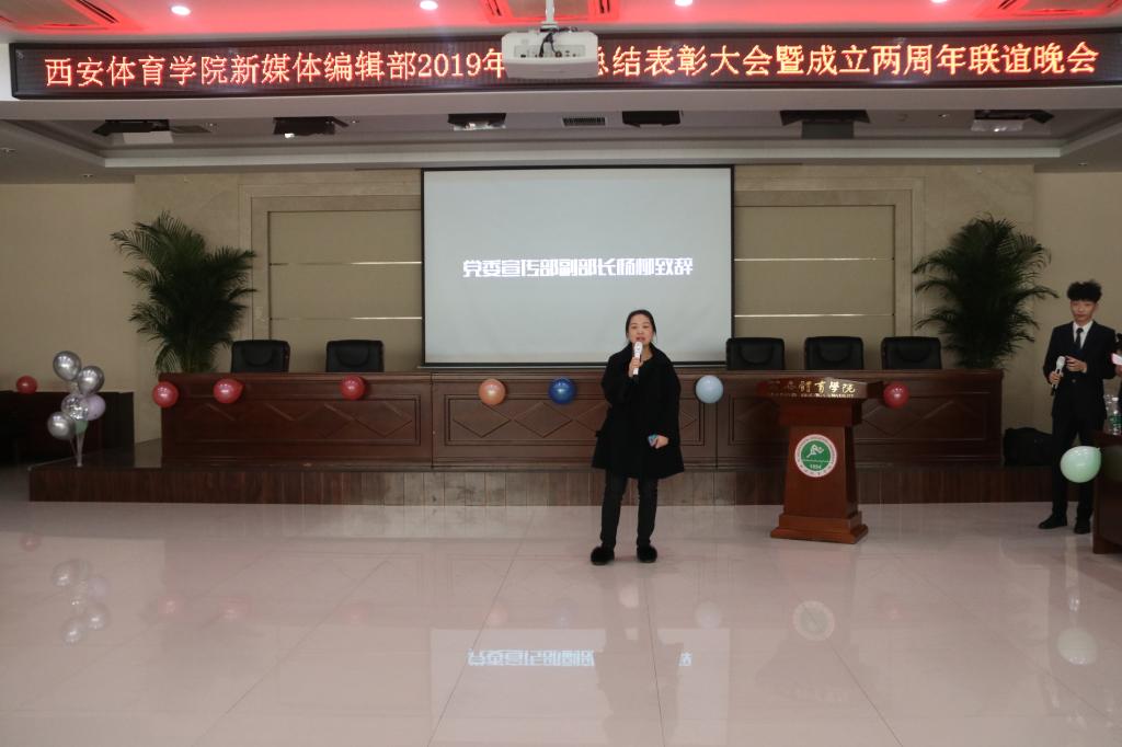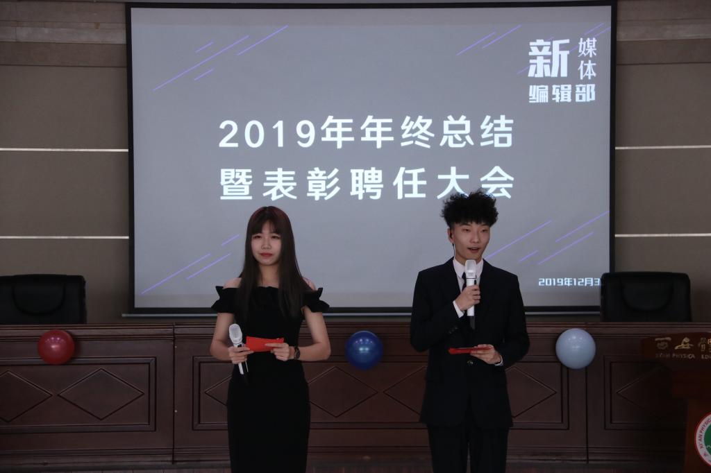 2019年12月30日,今年会官方网站新媒体编辑部2019年年终总结表彰大会暨成立两周年联谊晚会在二号综合办公楼六楼报告厅举办。校党委宣传(统战)部副部长杨柳、新媒体中心副主任孙妍、理论教育科副科长张媛、新闻宣传科倪威胜、新媒体编辑部指导教师顾彬等老师出席本次活动。