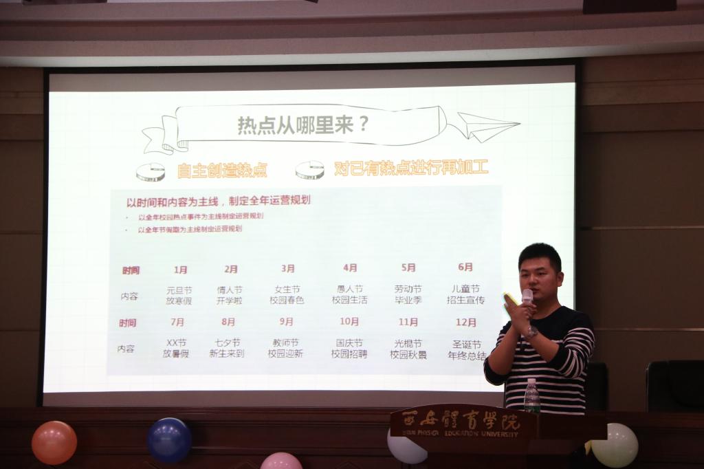 我校2005级新闻专业校友蔡珂,现担任华商网副总一职,向新媒体编辑部的成员讲述了新媒体的近几年的变化和未来发展的趋势。他说道,媒体形式正在翻天覆地地变化着,我们正处在从擅长给五万人做新闻的大众时代,到不擅长给五十个人做内容的精众时代。讲完媒体形式的发展还强调了媒体人的责任心的重要性,互联网日新月异,媒体人的更新也越来越快,我们要具备良好的资源整合与执行力、责任心与能力兼具才能在媒体时代脱颖而出。