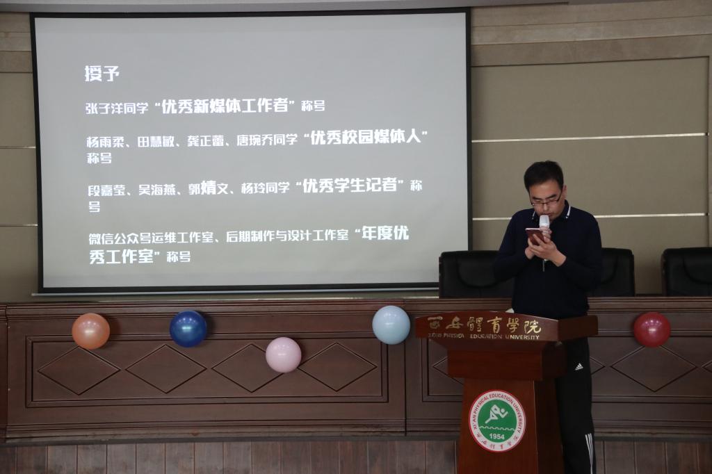 顾彬老师宣读2019年新媒体中心业务技能比拼大赛中获奖名单