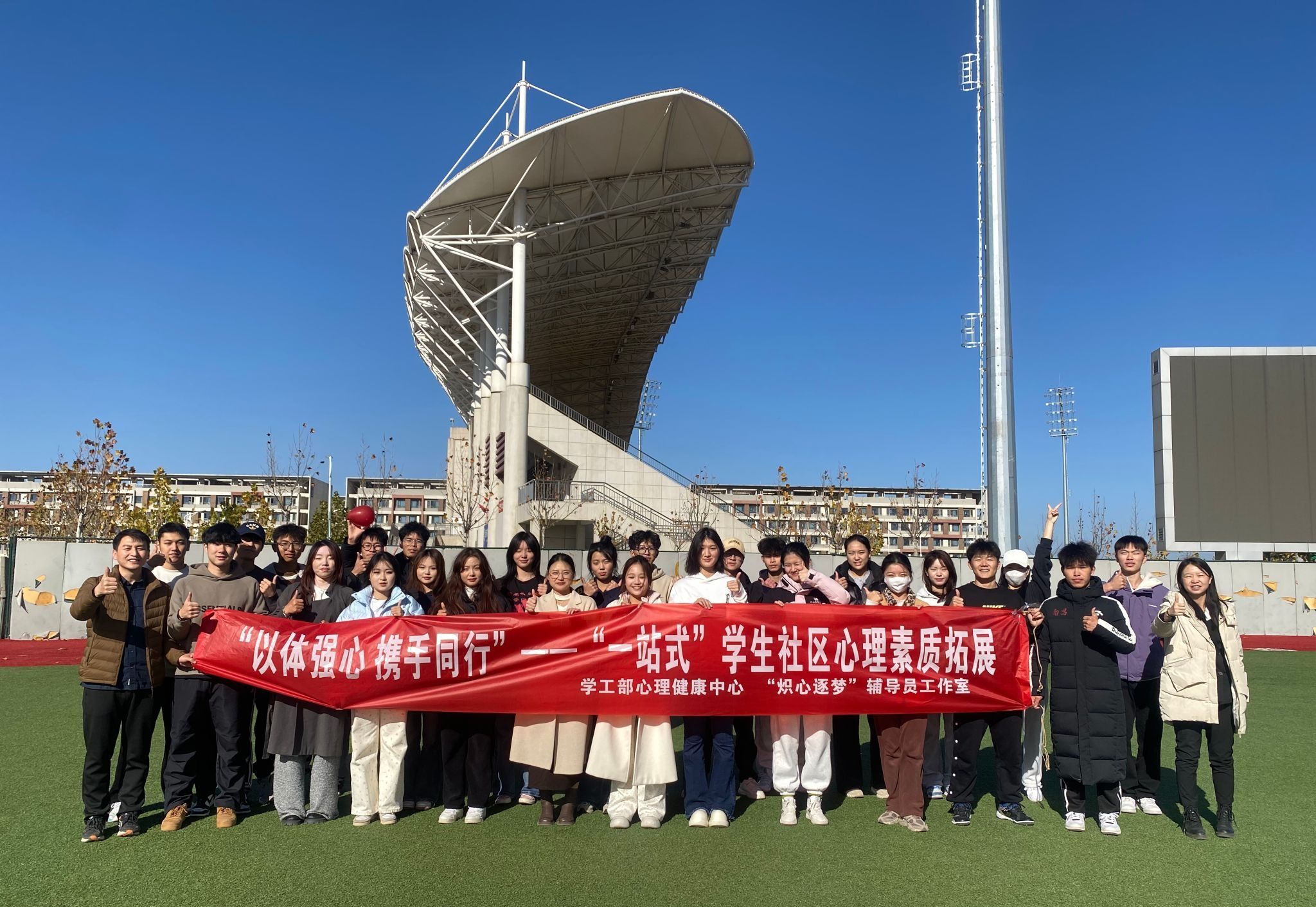 为锻造今年会学子强健体魄,积极探索“以体育人,以体强心”的有效实施路径。11月27日中午,由学工部心理健康中心主办的“以体强心 携手同行”——“一站式”学生社区心理素质拓展活动在鄠邑校区顺利举行。中心全体教师、工作人员参与,青年志愿者协会协助活动开展。