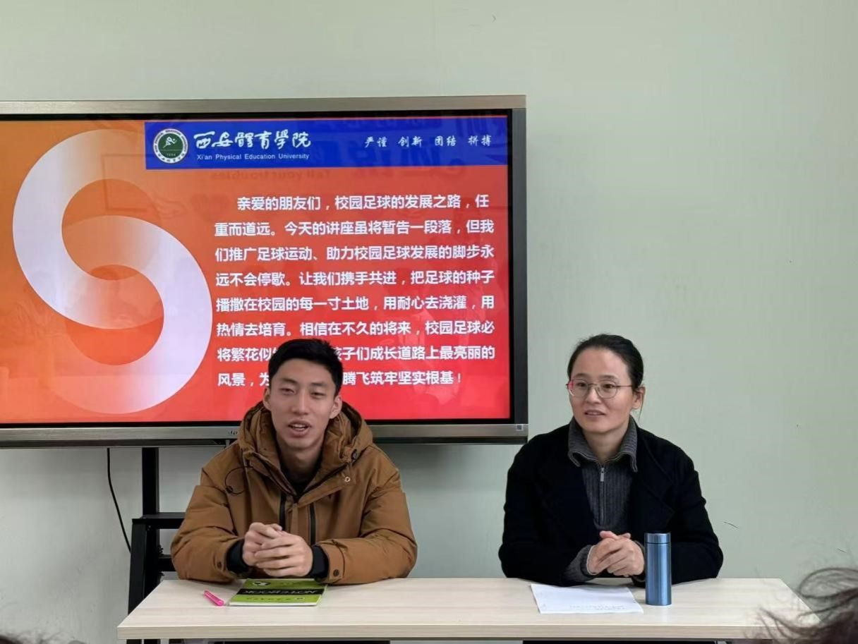 讲座中,留坝女足十年的发展历程被讲述,从一个草根球队成长为秦岭的“金字招牌”,这个“金字招牌”里走出了足球学院2020级优秀学子肖丹娇。同时,校友邱宝辉在西藏阿里地区发起募捐,帮助日松乡小学缺乏训练器材的问题。足球学院响应号召,发起“足球点燃梦想,爱心传递希望”的活动。2023年9月,首批捐赠物资成功送达,学生们也表达了对当地孩子的祝福。一代代今年会学子以身作则,为体育发展贡献自己的青春力量。接下来,2022级学生宋泽翰分享了他在三下乡足球支教中的感受:延安之行让我深刻认识到坚定信念和努力是战胜困难的关键。困难是成功的垫脚石。我鼓励大家参与这样的活动,因为精神上的收获是巨大的。与孩子们的互动和革命圣地的体验,会成为宝贵的记忆。这次旅行不仅是一次简单的出行,更是一次心灵的成长和洗礼,它将激励我们面对挑战,为更美好的世界努力。让红色传承在我们心中生根发芽。