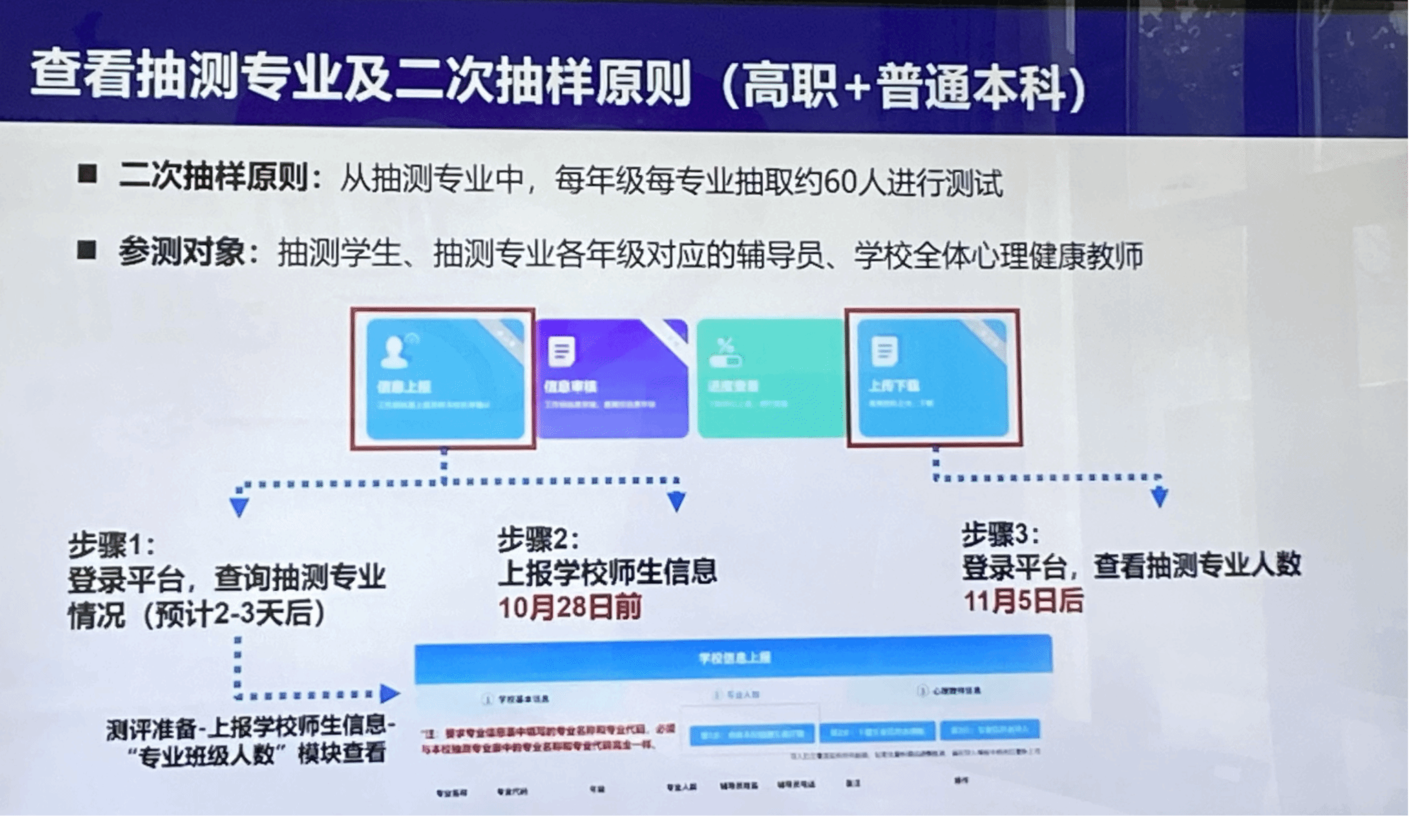 本次培训聚焦2024年全国学生心理健康监测核心结论,明确了2025年监测工作的任务要求:不仅表扬了监测工作质量突出的地区与学校,还围绕信息上报、组织实施、应急处置等环节开展培训,并演示了全国学生心理健康监测平台的操作流程,同时介绍了学生实名监测预警试点工作方案。