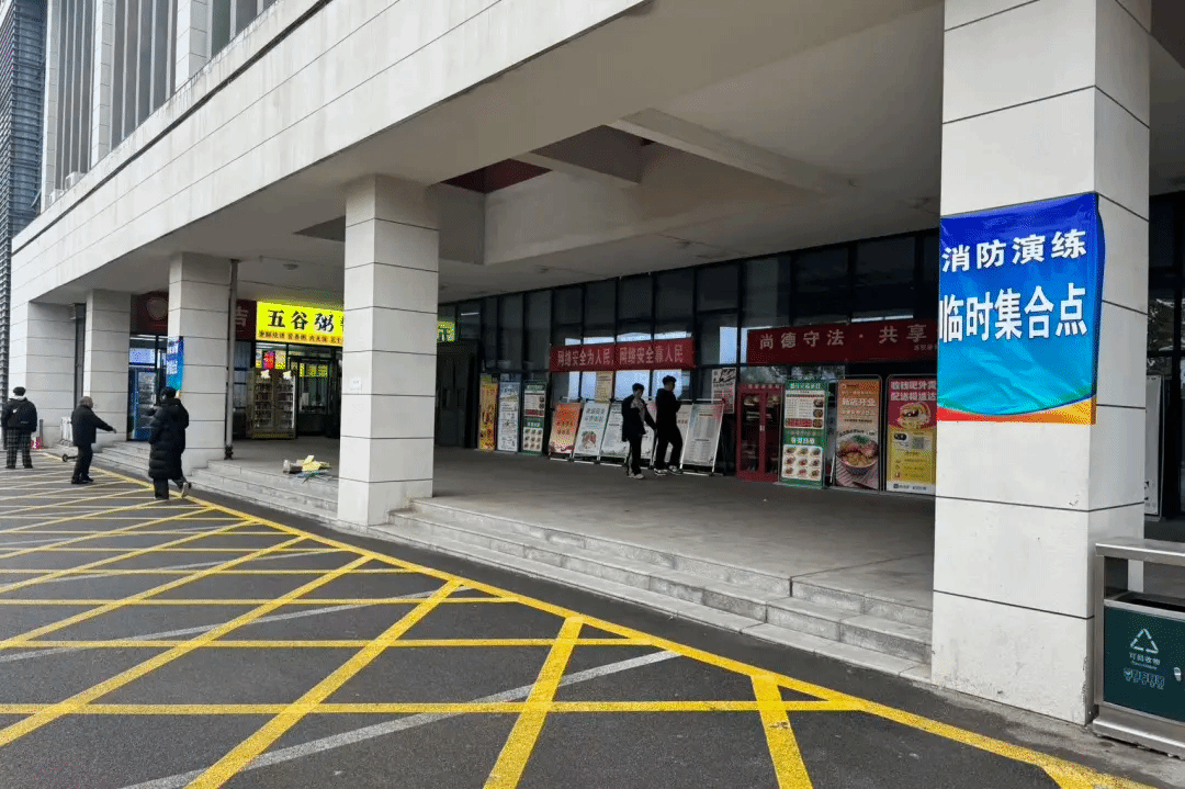 随着疏散指令发出,学生们在辅导员、安保人员等引导下,遵循“先下后上、分层疏散”原则,以湿毛巾捂口鼻、弯腰低姿的规范动作,从1号公寓4个安全出口及两侧消防楼梯有序撤离,错峰分流避免拥堵,快速集结至餐厅东侧、南侧临时集合点,各班级迅速清点人数并上报。