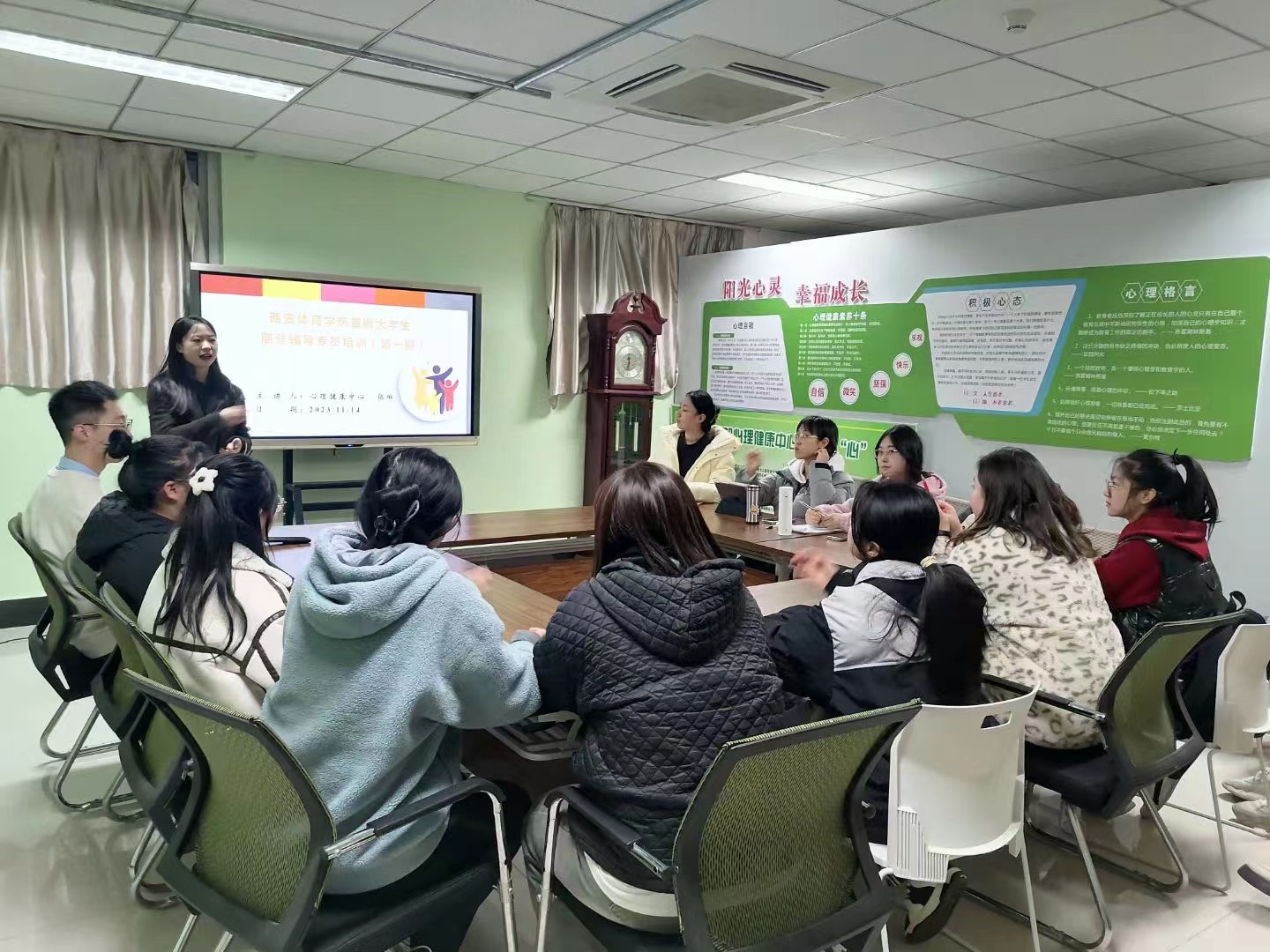 朋辈心理辅导活动中,心理健康中心陈琳老师首先对大学生朋辈辅导专员进行培训,使其掌握朋辈辅导的基本态度和技术。朋辈活动旨在通过朋辈间的心理互助,协助求助学生更好的面对学习和生活中可能会面临的学业、人际、情绪情感和发展等问题,使其获得同龄人的理解与关爱。朋辈辅导让更多的学生成为高校心理咨询的主体,充分发挥了学生心理助人的主动性。