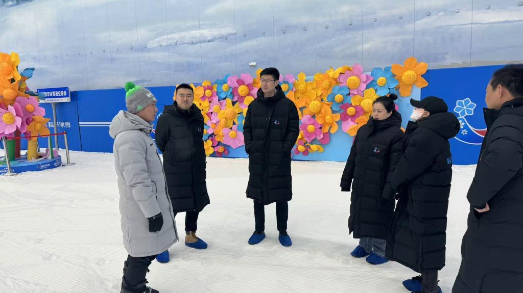 于昕一行在西安冰雪中心经理赵娅楠、赛训负责人陈瑞陪同下分别前往际华冰雪学校、高台滑道、冰球馆、际华冰雪酒店,实地调研了师资条件、场地规模、场所运营等情况,并现场观摩了陕西省青少年跳台滑雪队训练。其间,于昕与我校2025届毕业生就在该企业的实习情况进行了详细交流,并着重询问了解了实习期间的收获和未来职业生涯规划。