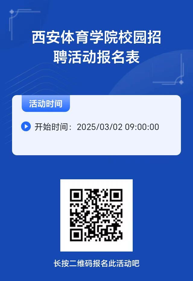 我校“线下专场宣讲会”“大型综合双选会”“在线招聘会”须扫描下方二维码进行报名。开放报名时间:3月2日9:00,校园招聘活动开放时间:3月10日。学校将在5个工作日内完成审核,并电话通知审核结果。