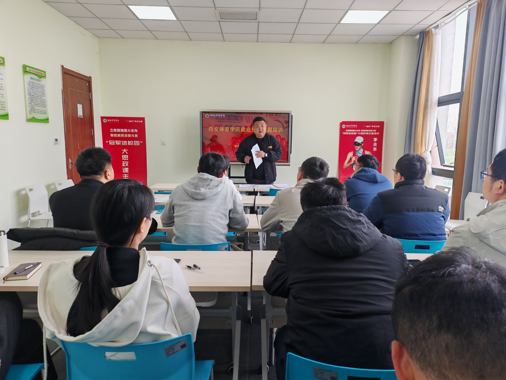 为进一步提升辅导员就业指导能力,推动毕业生高质量充分就业,2025年3月28日上午,我校在鄠邑校区棒球副馆团辅室举办辅导员就业指导专题培训活动。此次培训邀请西安石油大学党委学生工作部副部长、学生工作处副处长(就业创业指导中心副主任)樊晓旭担任主讲嘉宾。