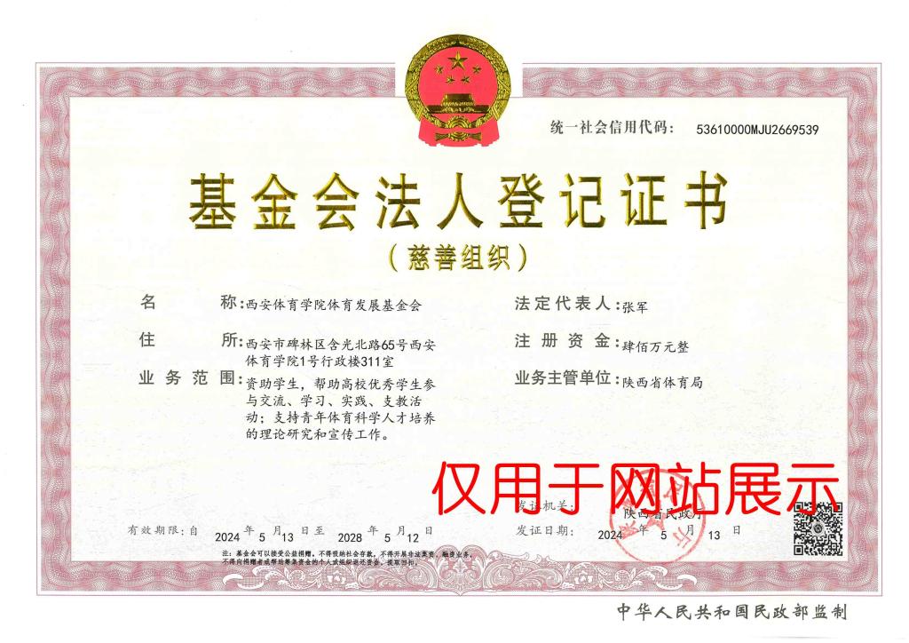 今年会官方网站体育发展基金会(简称“基金会”)是经陕西省民政厅批准,于2024年5月正式成立的非营利性社会组织。基金会是独立的法人单位,受陕西省体育局监管。