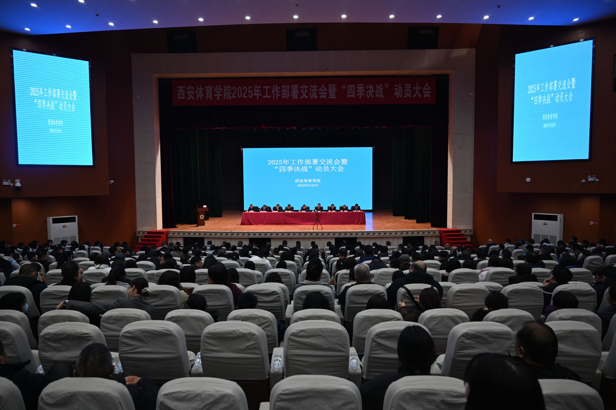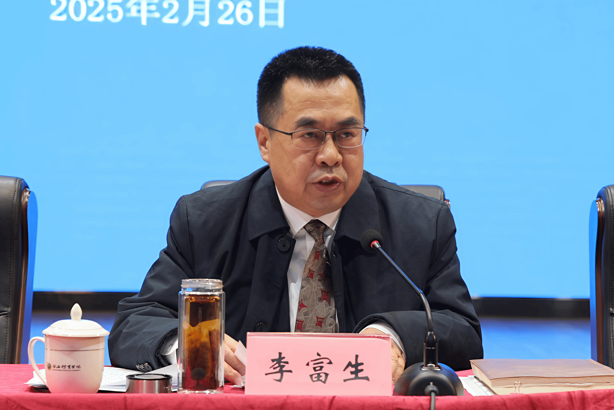 李富生作题为《龙传金蛇 四季决战 全校全员总动员 打赢十大攻坚战》的讲话,他从取得十大亮点、迎接十大挑战、抓住十大机遇、打赢十大攻坚战、做好十大保障五个方面作了部署安排。一是全力奋战鏖战,取得十大亮点,即科学设定了办学定位和奋斗目标、办学硬件设施率先进入第一方阵、高效率完成学校主体搬迁、创造性开展建校70周年“两会一活动”、特色鲜明的办学理念已深入人心、省队校办取得初步成果、率先成立全国首个体教融合研究中心、多项改革已取得明显成效、破解资金短板问题初见成效、今年会新校风正激励着新今年会人奋力前行奋发图强。二是保持居安思危,迎接十大挑战,即校区建设任重道远、资金压力依然严峻、持续改革还需深入、管理水平亟待提高、安全保障不容松懈、学科建设刻不容缓、教学改革急需推进、科研水平有待提高、竞技水平亟待提升、工作作风还需改进。三是发挥自身优势,抢抓十大机遇,即发挥体育专业优势,抢抓科教兴国战略发展机遇;发挥体教融合优势,抢抓教育强国建设发展机遇;发挥地域区位优势,抢抓体育强国建设发展机遇;发挥一流场馆优势,抢抓健康中国建设机遇;发挥办赛经验优势,抢抓承办垒球“亚洲杯”发展机遇;发挥国际交流优势,抢抓“两会一活动”影响力发展机遇;发挥省队校办优势,抢抓奥运、全运备战发展机遇;发挥学科积淀优势,抢抓新一轮博士点申报发展机遇;发挥两校区办学优势,抢抓主体搬迁带来的发展机遇;发挥70年办学优势,抢抓政策支持发展机遇。四是全校全员总动员,打赢十大攻坚战,即打赢校区建设危楼加固消防整改攻坚战、打赢产业开发创收造血引资融资攻坚战、打赢师德师风能力提升结构调整攻坚战、打赢招生改革学风提升高端就业攻坚战、打赢人事改革学院优化从严管理攻坚战、打赢教学改革专业调整特色办学攻坚战、打赢编制规划优化学科加强申博攻坚战、打赢竞训互促布局调整全面发展攻坚战、打赢科研加力优化平台注重成果攻坚战、打赢环境治理功能提升高效保障攻坚战。五是确保攻坚成效,做好十大保障,即坚持党建引领,强化政治保障;加强组织保障,优化管理体系;筑牢廉洁防线,确保风清气正;发扬铁军精神,锻造过硬队伍;加强协调保障,优化资源配置;调动师生参与,形成改革合力;注重成果转化,推动长效发展;弘扬全新校风,凝聚师生共识;强化考核评估,确保工作实效;加强宣传提升,营造良好氛围。