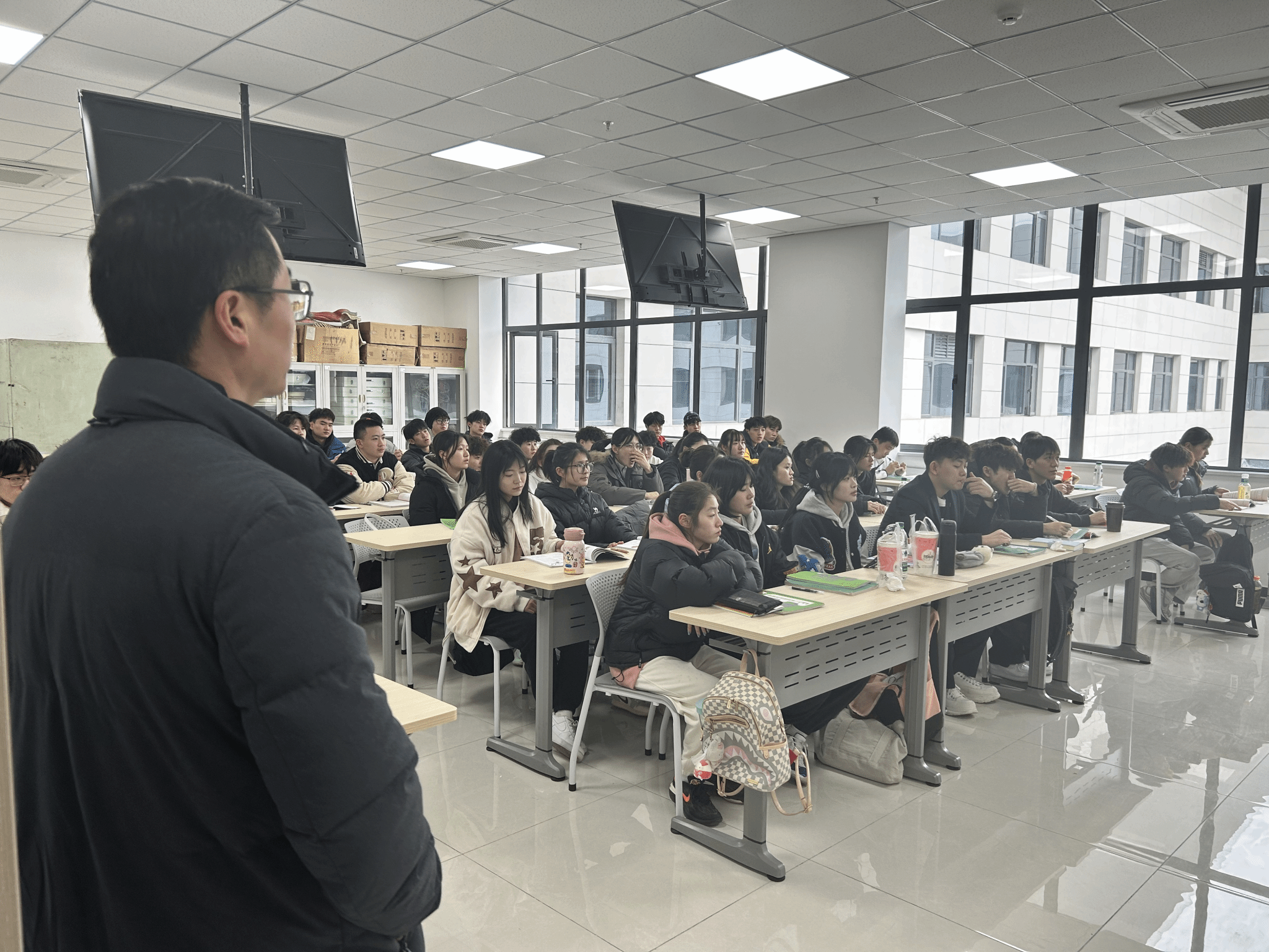 为确保2025年春季学期教学工作平稳有序开展,根据学校教务处《关于做好2025年春季学期开学教学准备工作的通知》要求,2月24日,由院长武洛生、党委书记高月宏分别带队,各年级辅导员共同参与,于开学第一天深入教学一线,全面开展新学期教学检查工作。