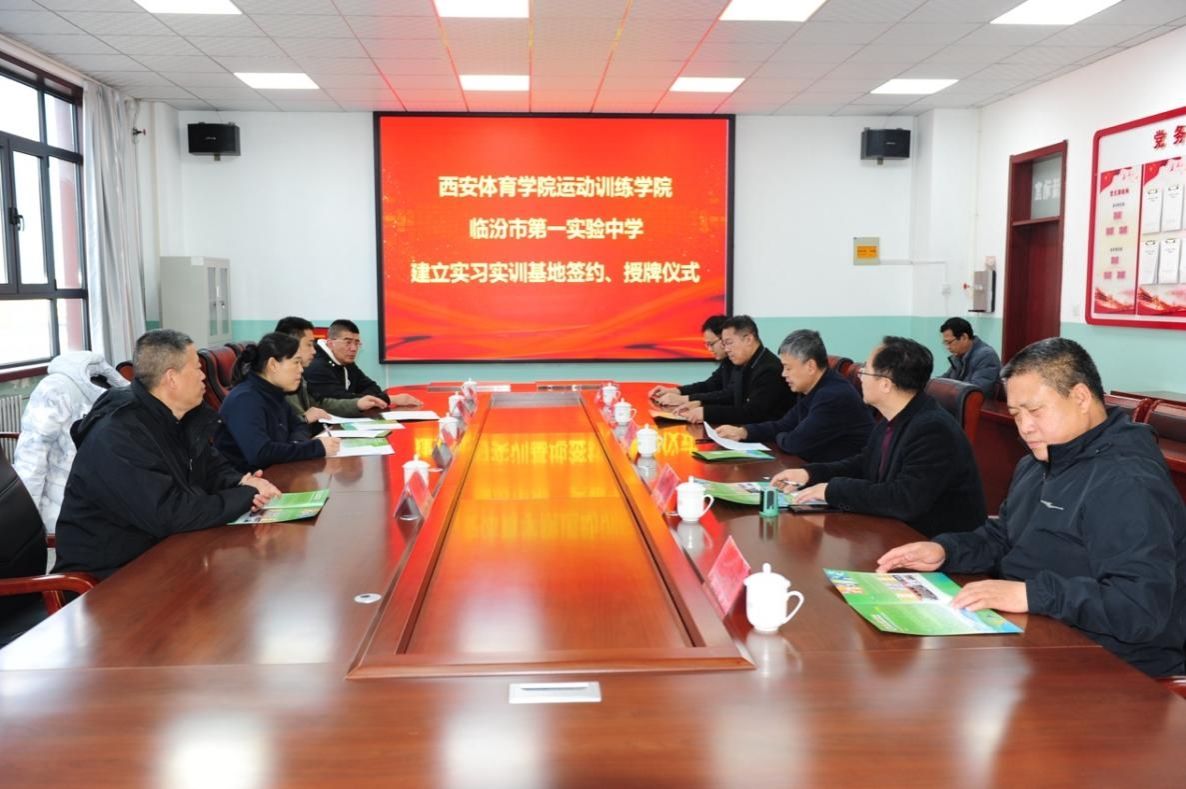 2025年3月15日,运动训练学院党委副书记王青、党政办公室副主任刘志云、篮球教研室教师鲍耀武一行。赴山西省临汾市第一实验中学和星火篮球俱乐部开展教育实习基地建立和访企拓岗行动。临汾市第一实验中学校长陕光,副校长张广德、王新春,体育组组长王洪生,星火篮球俱乐部总经理冯甫参加会议。