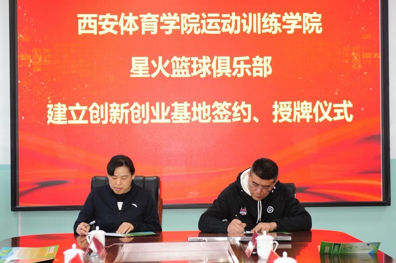 为进一步深化产教融合,提升学生实践能力,运动训练学院与星火篮球俱乐部积极探索合作新模式。运动训练学院党委副书记王青详细介绍了学院自身雄厚的师资力量,承担多项国家级、省级科研项目。培养出的众多优秀运动员,在国内外赛事中屡获佳绩,为体育事业输送大量专业人才,拥有丰富且成功的人才培养经验。星火篮球俱乐部则分享了自身在行业内多年积累的实践资源,拥有成熟的赛事运营体系与专业的教练团队。凭借在市场中的深耕细作,俱乐部对行业需求有着敏锐的洞察力。在充分沟通并达成共识后,运动训练学院与星火俱乐部成功建立创新创业基地,并举行签约授牌仪式。仪式上,双方代表签署合作协议,正式开启协同育人新篇章,通过创新创业基地的建立,未来双方将在人才培养、实践教学、创新创业等方面开展深度合作,为学生提供更广阔的实习与就业平台,也为俱乐部输送专业人才,实现互利共赢。