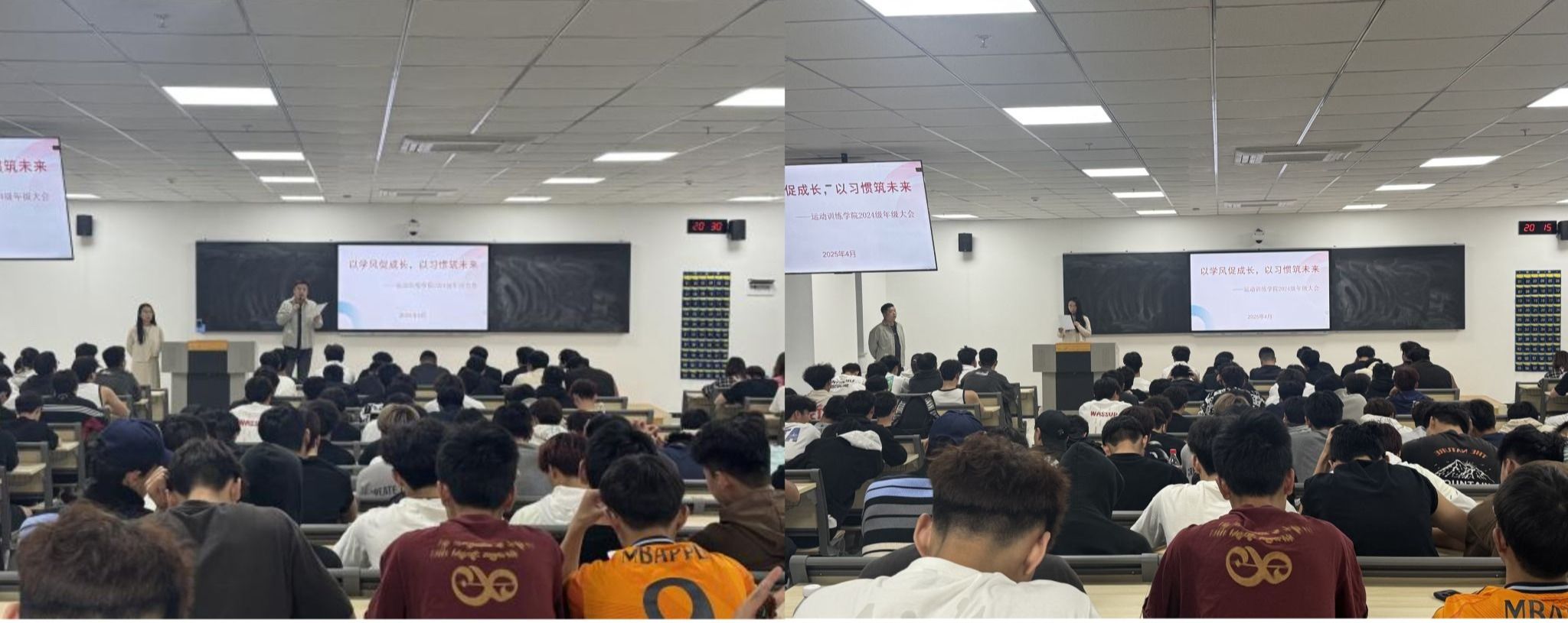 为进一步规范学生课堂行为,营造良好学习氛围。2025年4月7日,运动训练学院2024级全体学生于教学楼308召开了学风建设大会,聚焦学风与纪律建设,明确新学期目标与要求。