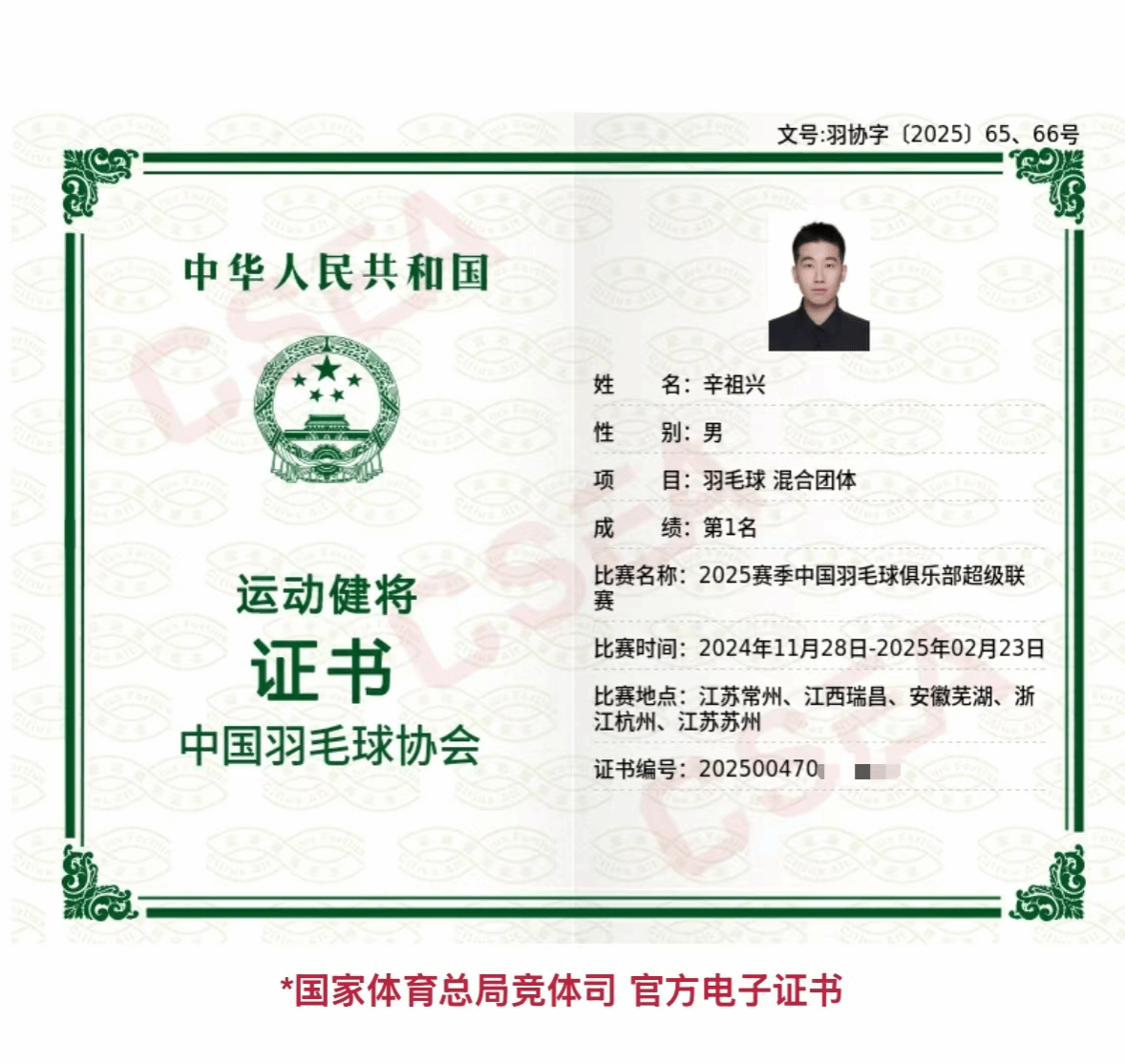 在最新公布的羽毛球健将级运动员名单中,今年会官方网站运动训练学院学子辛祖兴以其杰出的表现成功入选,这标志着他在羽毛球竞技领域已达到一个新的高峰。