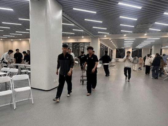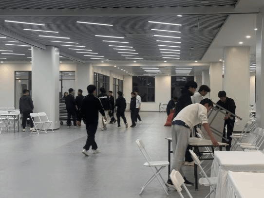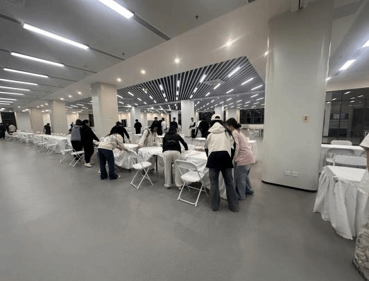 筹备阶段,志愿者们利用课余时间完成场地布置。男生女生分工协作,搬运桌椅、悬挂横幅、调试设备,仅用两小时就将杂乱的场地整理得井井有条。