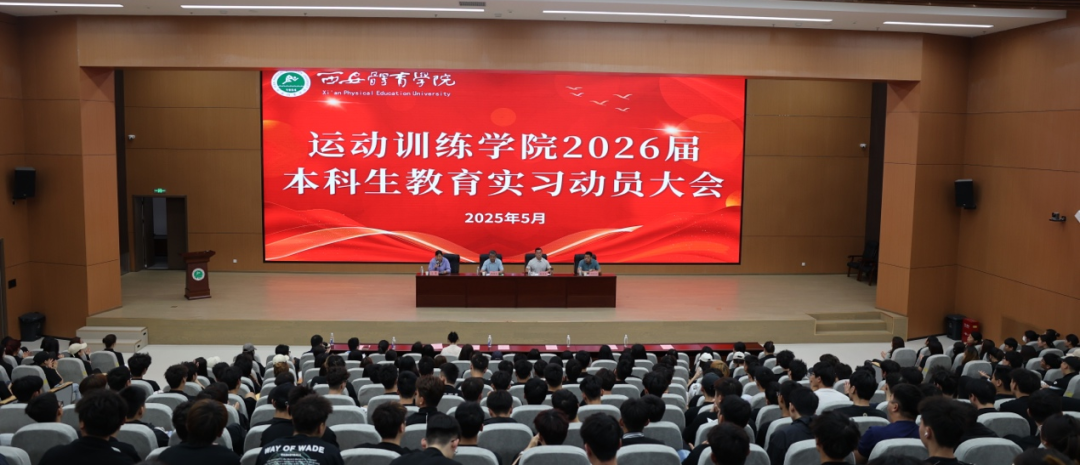 为切实保障 2026 届毕业生实习工作有序推进,5月8日上午,运动训练学院在鄠邑校区综合教学楼三楼学术报告厅召开2026届本科生教育实习动员大会。运动训练学院院长武洛生、党委书记高月宏、党委副书记王青、党政办公室主任刘志云、实习指导教师、22级辅导员及2022级全体学生参加会议,会议由王青主持。