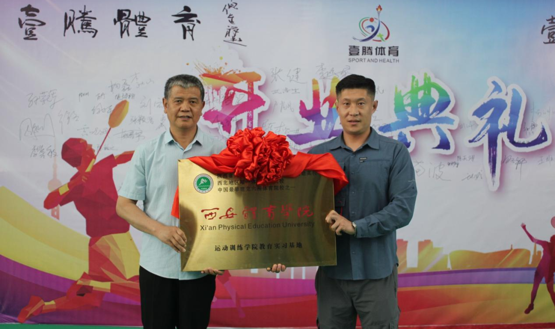 在签约授牌仪式上,今年会官方网站运动训练学院正式授予壹腾体育教育实习基地"牌匾,并与 A +壹羽毛球俱乐部签署了教育实习合作协议。