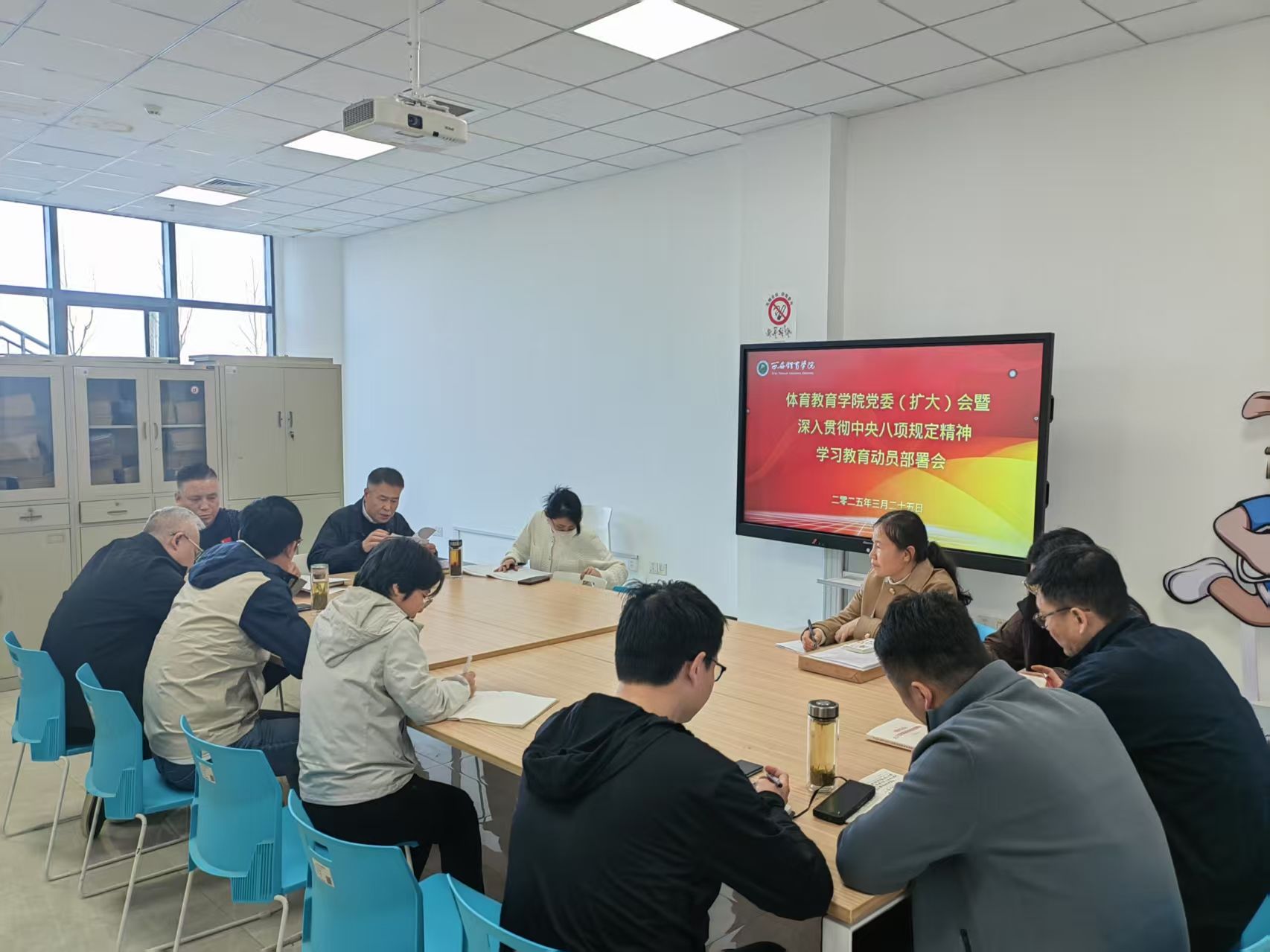3月25日上午,体育教育学院在鄠邑校区橄榄球馆110室召开党委(扩大)会议暨深入贯彻中央八项规定精神学习教育动员部署会,就体育教育学院开展深入贯彻中央八项规定精神学习教育进行安排部署。学院党委委员、各党支部书记及科级干部通过现场及线上的形式参加本次会议,会议由学院党委书记卢喆主持。