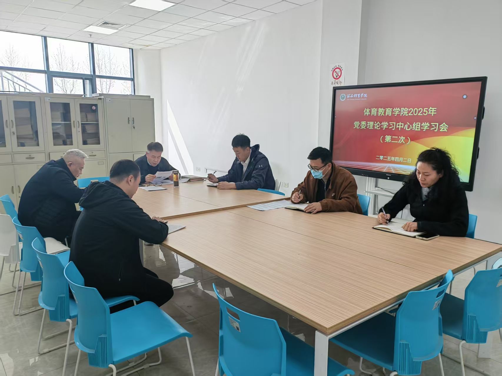 4月2日下午,体育教育学院在鄠邑校区橄榄球馆110室召开体育教育学院2025年党委理论学习中心组第二次学习暨深入贯彻中央八项规定精神学习教育读书班第一次集体学习会,学院党委委员卢喆、黄岗、宋耀伟、马文新、杨 辉、宗月民参会,会议由院党委书记卢喆主持。