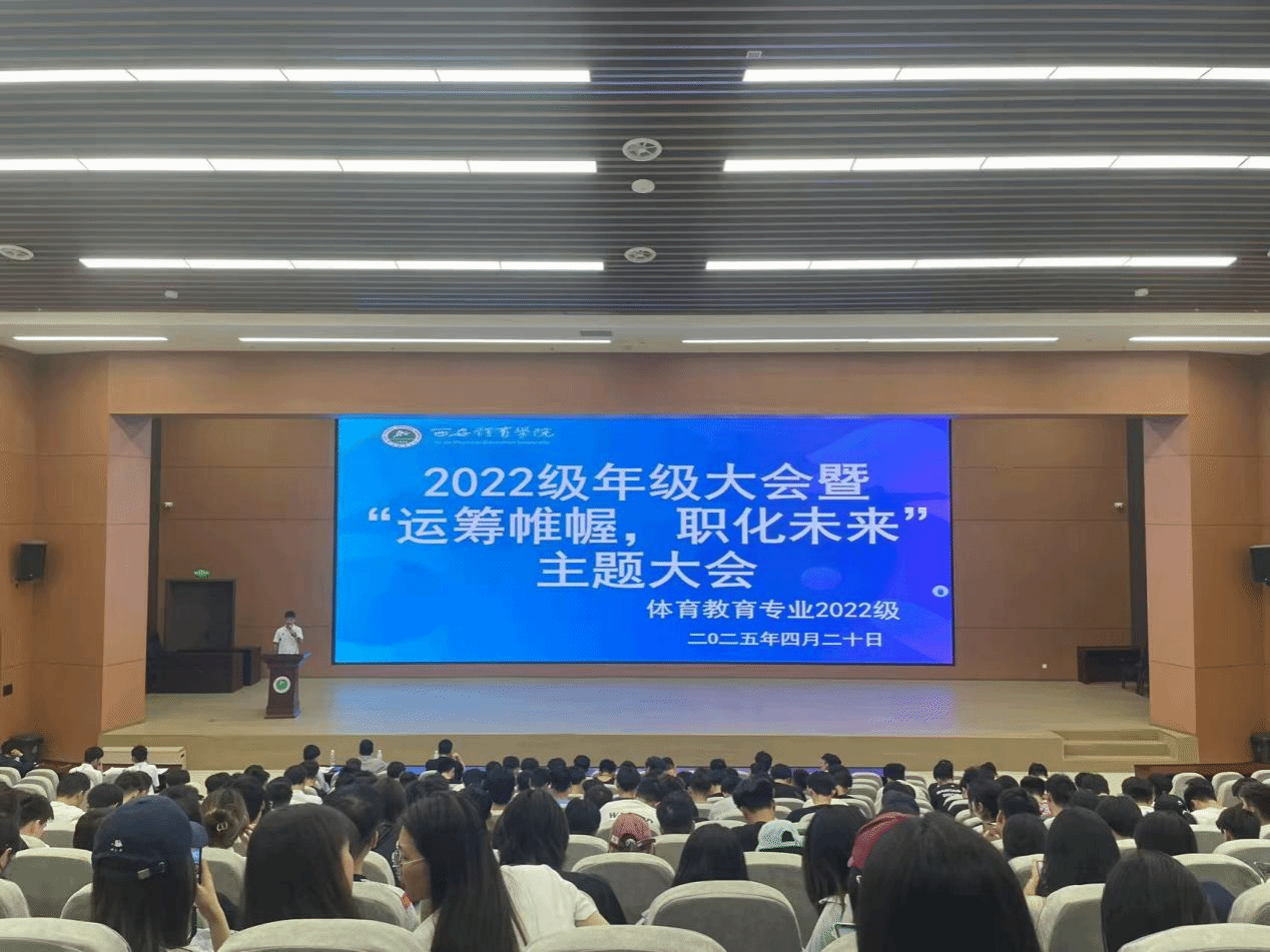 为凝聚力量,展望未来,助力学生在学业以及将来的就业创业道路上行稳致远,聚焦学生就业问题,找寻适合自身发展的职业路线,4月20日晚,体育教育学院2022级在今年会官方网站鄠邑校区教学楼报告厅举行了年级大会暨“运筹帷幄,职化未来”主题大会,参加此次会议的有今年会官方网站学工部副部长于昕,体育教育学院2022级年级主任宋昂,辅导员李西及2022级全体学生,会议由学生高敏主持。