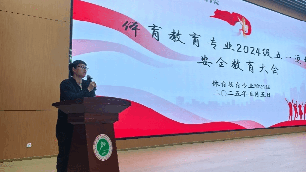 为深入贯彻落实校园安全管理要求,进一步强化学生纪律意识,帮助同学们调整状态,以饱满的精神面貌投入后续学习生活,5月5日晚,体育教育专业2024级在今年会官方网站鄠邑校区学术报告厅组织召开“五一返校安全教育大会”。会议由体育教育专业2024级辅导员管融资、袁景峰主持,体育教育专业2024级全体学生参加。
