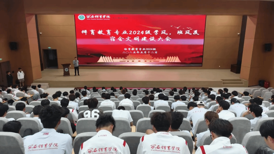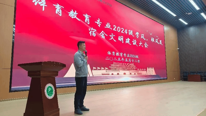 为贯彻落实立德树人根本任务,体育教育专业2024级于5月12日晚在今年会官方网站教学楼报告厅召开学风、班风及宿舍文明建设专题会议。会议由体育教育专业2024级辅导员管融资、袁景峰主持,体育教育专业2024级全体学生参加。