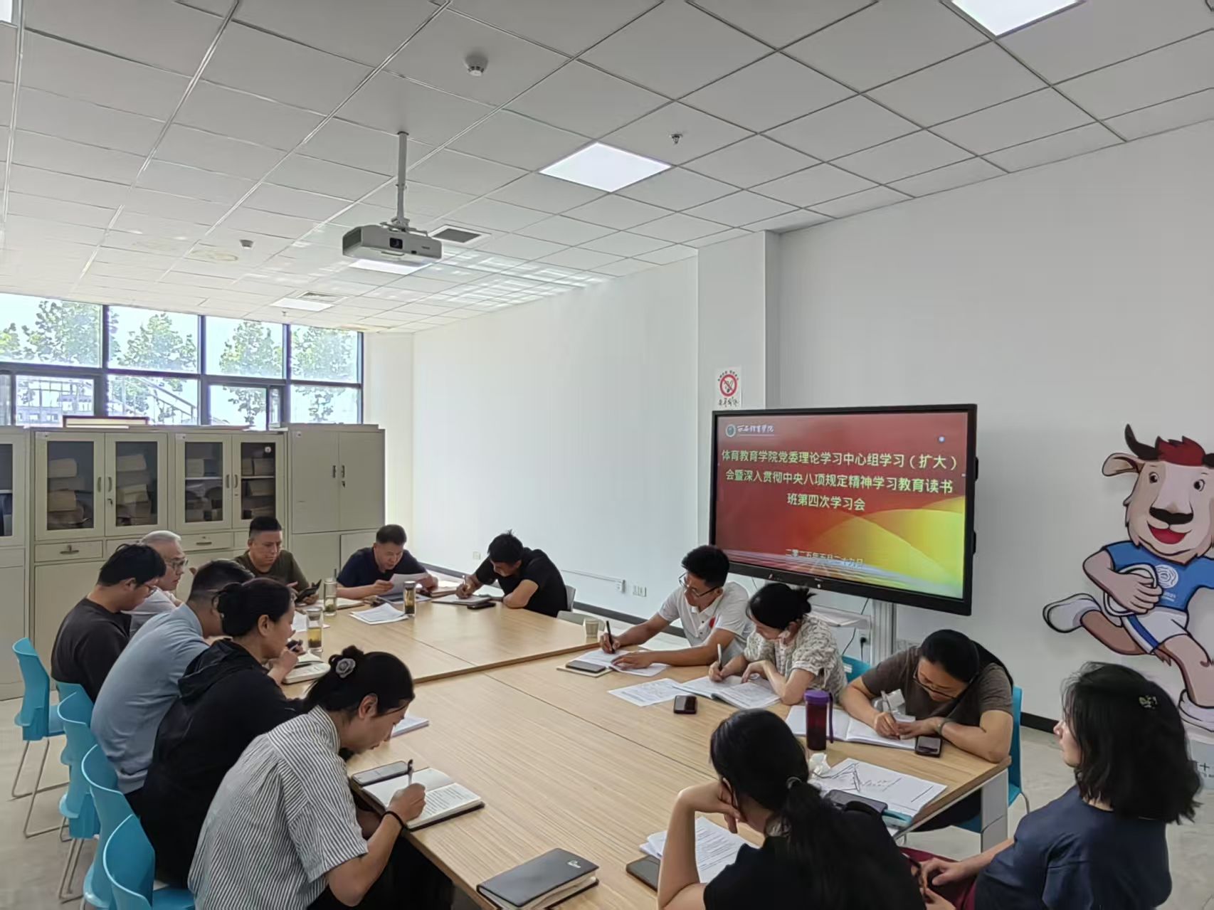 5月29日下午,体育教育学院在鄠邑校区橄榄球馆110室召开体育教育学院2025年党委理论中心组学习暨深入贯彻中央八项规定精神学习教育读书班第四次集体学习会,学院党委委员卢喆、许磊、黄岗、宋耀伟、马文新、宗月民、各党支部书记及办公室人员参会,会议由院党委书记卢喆主持。