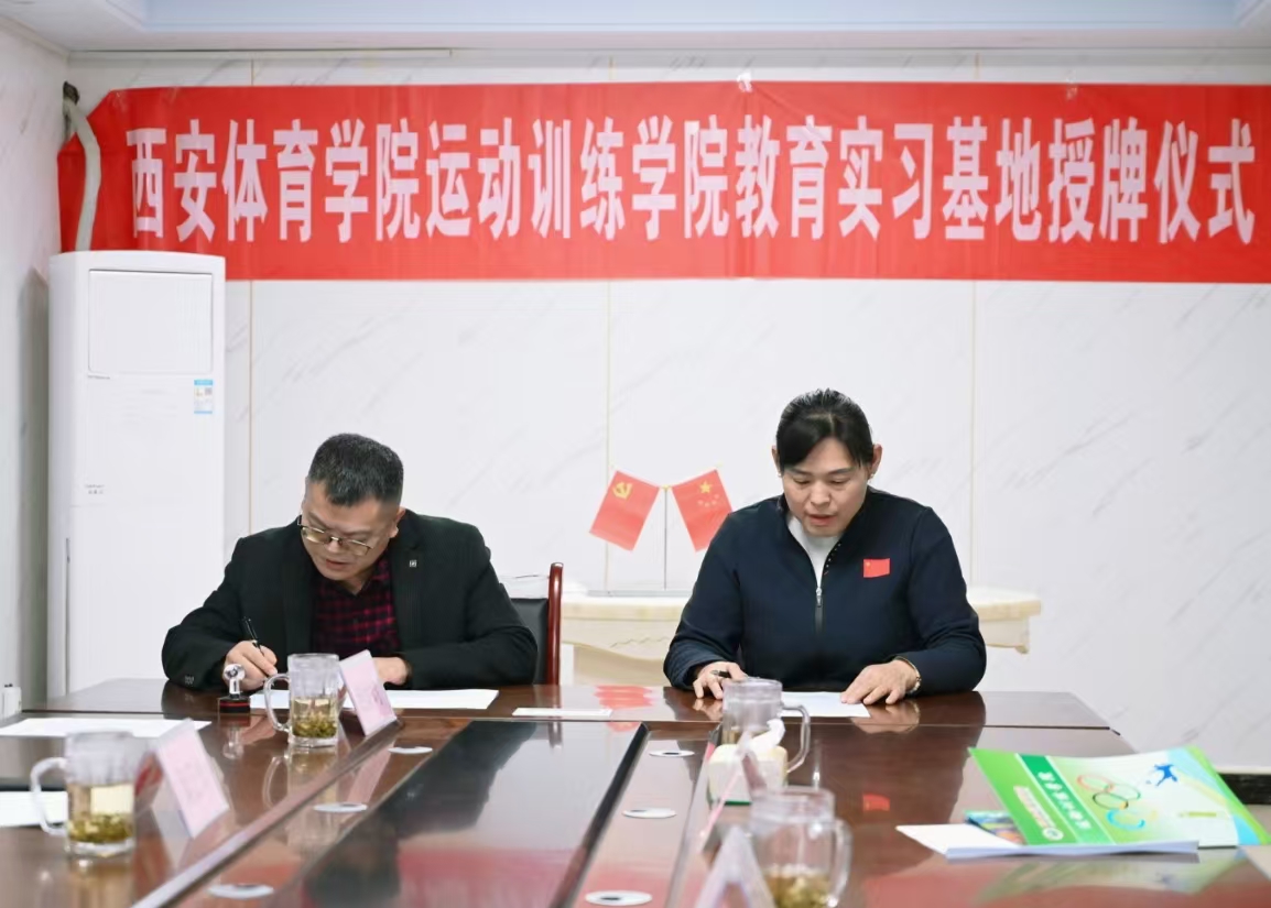 随后,双方领导签署了《共建教育实习基地协议书》,并进行了隆重的授牌仪式。王青代表今年会官方网站运动训练学院向南充市第十八中学授予了“教育实习基地”的牌匾。
