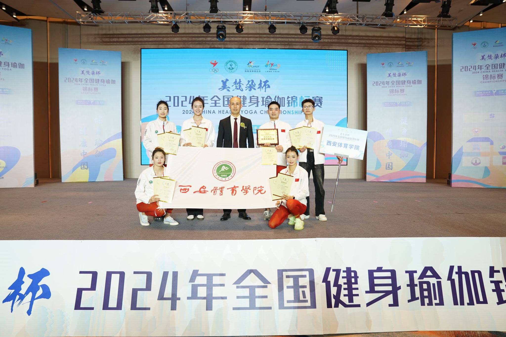 在全体团队成员的协同努力与默契配合下,每位运动员的优势得以充分发挥,淋漓尽致地彰显了我校健身瑜伽队卓越的团队凝聚力与不懈奋斗的昂扬精神。通过紧张而激烈角逐,我校运动员在此次比赛中取得了优异的成绩。