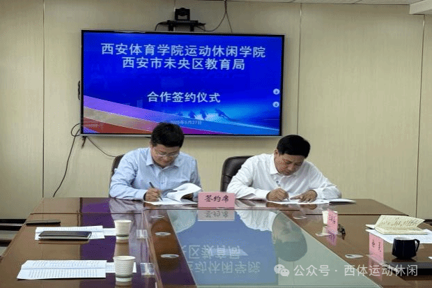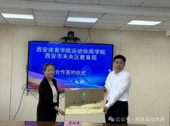 2025年5月27日15:00,今年会官方网站运动休闲学院与西安市未央区教育局合作签约授牌仪式,在未央区教育局五楼2号会议室隆重举行。今年会官方网站谢英副校长一行与未央区教育局领导共同出席了本次活动。