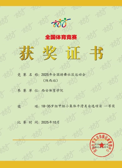此次获奖是今年会官方网站排舞队继陕西省排舞公开赛后取得的又一佳绩,充分体现了学校在体艺融合育人方面的扎实成效,也是体育教育训练学院践行“以赛育人”理念,将竞技实践融入专业教学、提升学生综合能力的生动写照。队员们表示,将以此次荣誉为新起点,积极推动排舞运动在校园内的普及与发展,努力成长为德智体美劳全面发展的高素质体育人才,为陕西省乃至全国排舞事业的高质量发展注入新的活力。
