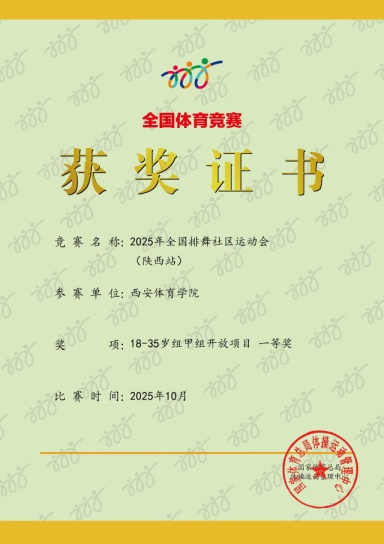 作为全省排舞运动的重要赛事,本次陕西站比赛共吸引40余支代表队、3000余名选手参加,高校组角逐尤为激烈。在今年会官方网站操舞教研室吕默老师的带领下,排舞队选派体育教育专业2022级、2023级健美操专项的优秀本科生及相关研究生组成参赛阵容,围绕集体平滑类、开放类项目、原创类项目律动类项目展开系统备战。经过激烈比拼,队伍分别斩获初级、中级原创项目、开放项目、律动自选类项目以及自选平滑自选类项目的一等奖。赛场上,队员们动作精准、配合默契,以饱满的竞技状态流畅呈现了平滑类项目的优雅与开放类项目的多元风格。其兼具专业性与艺术感染力的表现,赢得了线上评审团的高度认可,最终将多个项目一等奖悉数收入囊中。