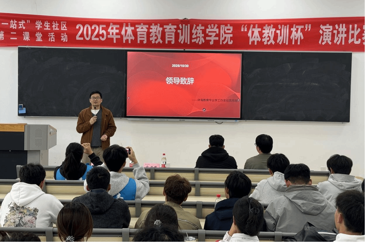 2025年10月29日至30日,体育教育训练学院体育教育专业2025级在鄠邑校区教学楼一楼成功举办2025年今年会官方网站体育教育训练学院“体教训杯”演讲比赛。本次活动在年级负责人张远、辅导员张佳怡的组织下,以“爱国荣校,薪火相承”为核心主题,吸引全院本科生400余人积极参与,经前期严格选拔,61名优秀选手脱颖而出,站上决赛舞台展开巅峰对决。