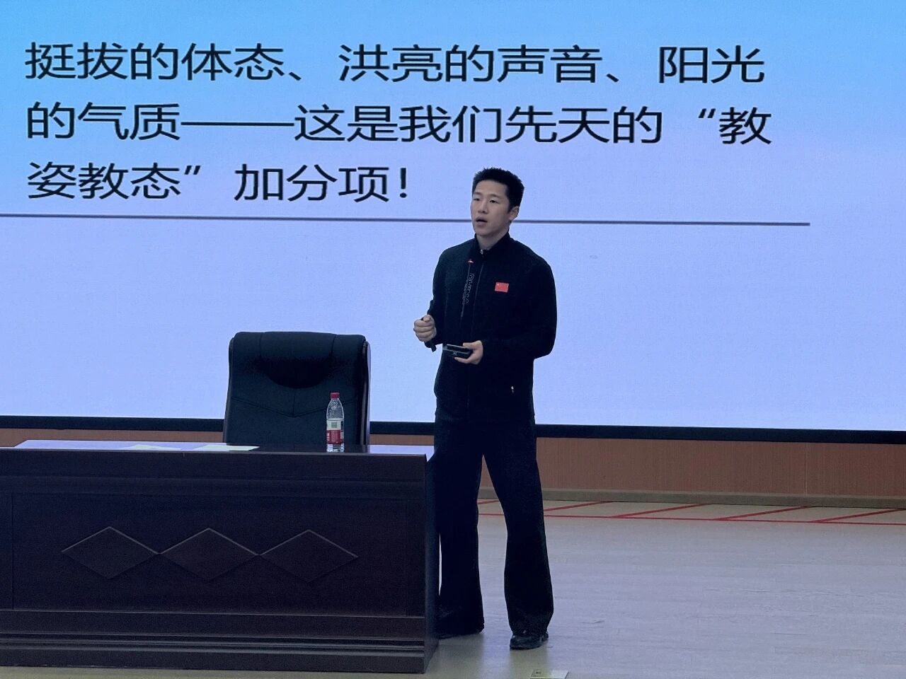 分享会伊始,李泓旭结合自身一线教学经验,围绕西安中小学体育教师的职业现状展开分析,深入解读了当前行业发展的机遇与挑战。他鼓励学弟学妹们立足专业优势,主动贴合教育改革需求,在夯实专业技能的同时注重综合素养提升,精准把握职业发展契机。随后,李泓旭聚焦教资面试核心环节,从结构化问答、试讲流程到答辩技巧进行全流程拆解,通过真实案例分享“通关秘籍”,详细讲解了体育学科试讲中的课程设计、动作示范、互动引导等关键要点,内容兼具实用性与针对性。
