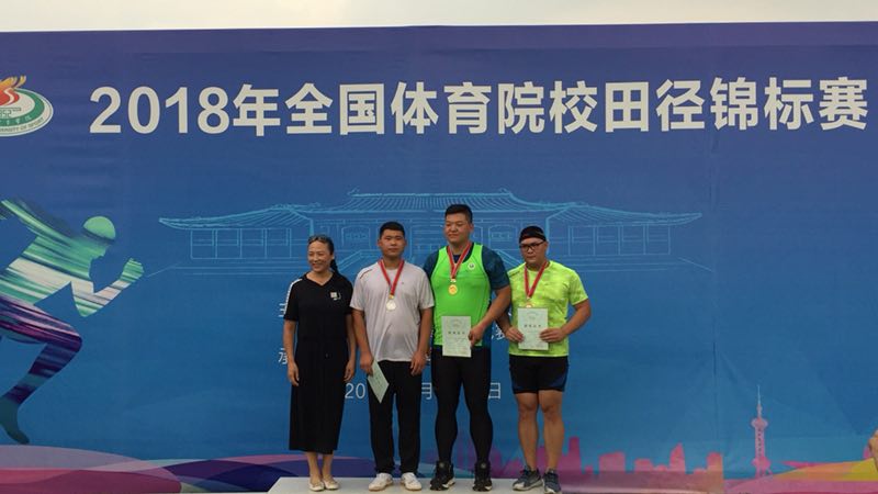 我系2015级学生陈剑在此次大赛的铅球项目比赛中以18.21米的成绩夺得了金牌,并且打破了18.11米的全国体院铅球项目纪录。