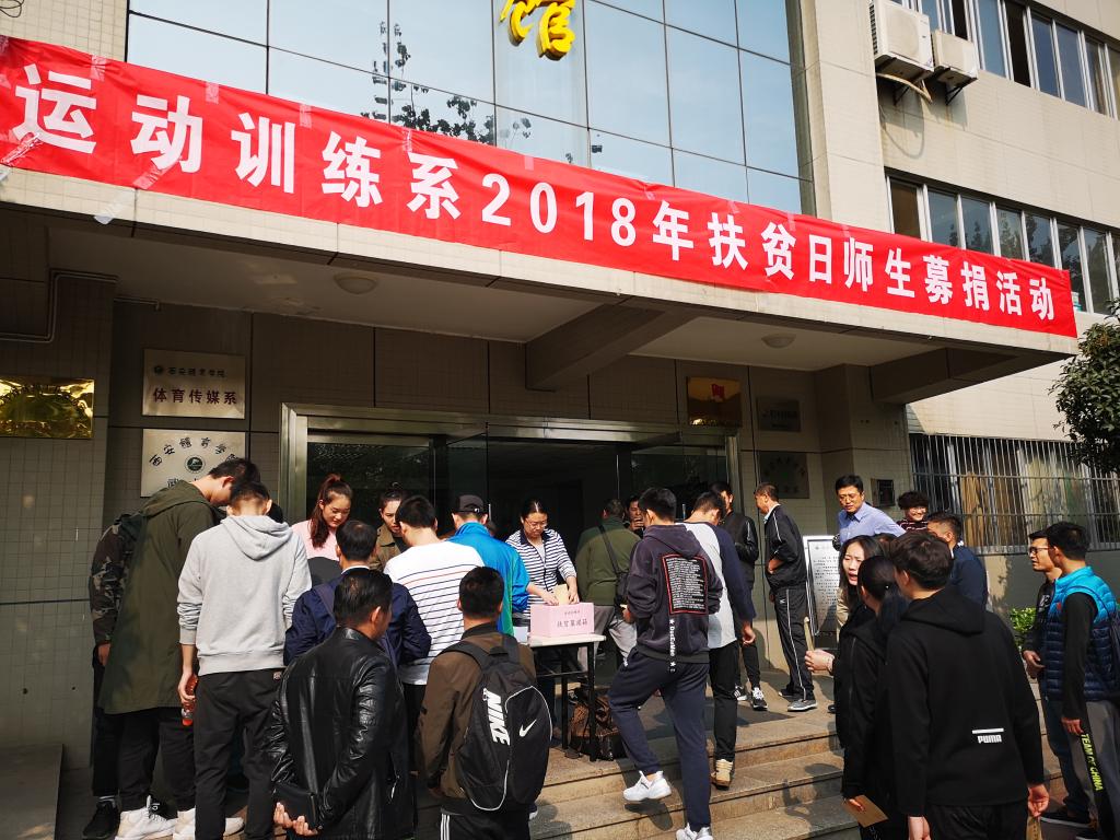 2018年10月17日是我国第5个扶贫日,也是第26个国际消除贫困日。根据《今年会官方网站2018年扶贫日活动方案》精神,运动训练系于2018年10月17日下午14点20分在综合训练馆楼下举行了“运动训练系2018年扶贫日师生募捐活动”。我系共有37名教职员工及部分学生参加了本次募捐活动,共筹得善款7316.2元。