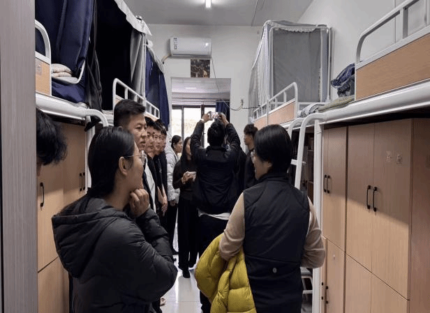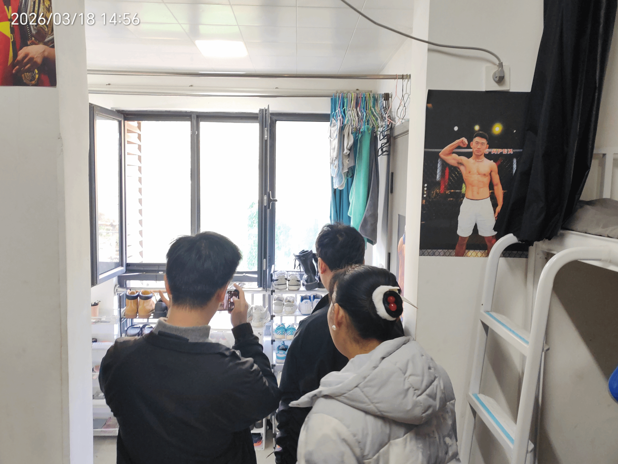 在年级辅导员管融资、袁景峰的向导下逐一观摩了体育教育专业2024级学生宿舍,宿舍文明卫生建设充分体现了辅导员在学生日常事务的管理水平和育人成效。本次活动以“学标杆、找差距、促提升”为核心,旨在通过全方位观摩,推动全校宿舍管理工作向内涵式发展迈进。