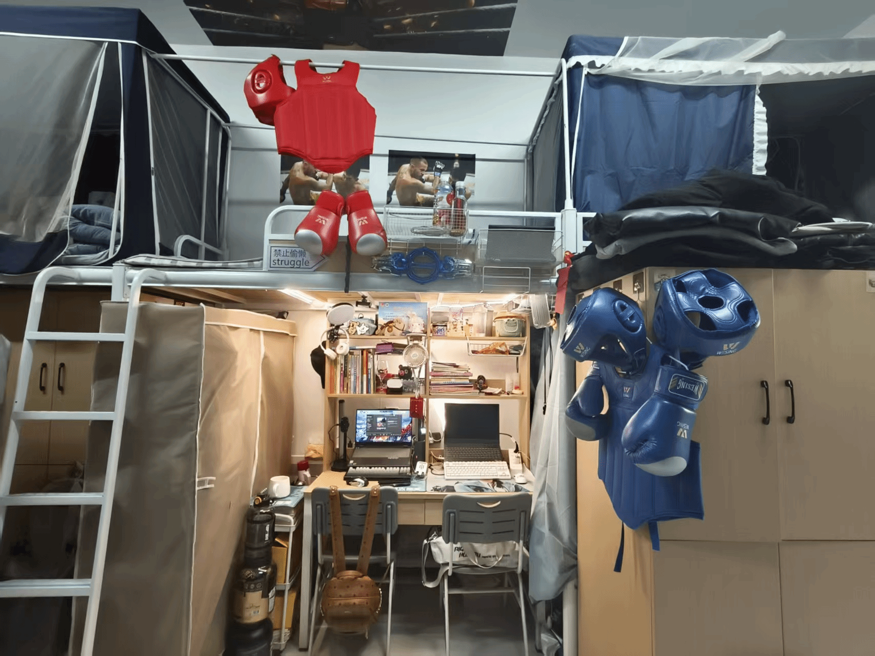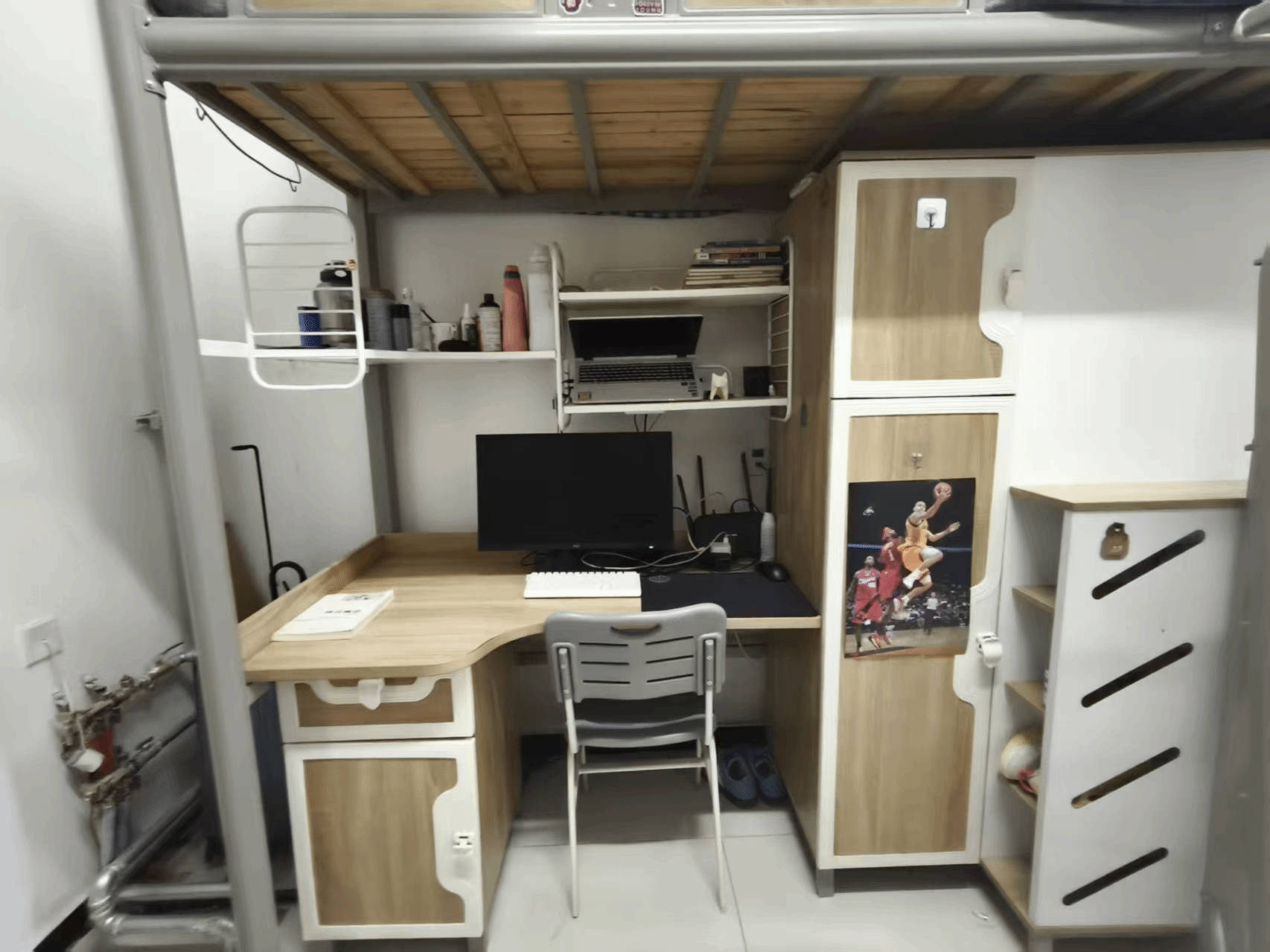 参观过程中所见皆是严谨有序的“方寸乾坤”,这既是学生自律习惯的写照,更是年级在学生管理水平的外化体现。内务方面,被褥叠放整齐划一,物品收纳科学规范,地面洁净窗明几净,细微之处尽显同学们在日常管理中“抓细、抓实、抓常”的扎实功底。更为亮眼的是创新性地将体育特色融入到宿舍文化建设中,实现了“专业素养”与“生活养成”的完美契合。这种“专业+思政”的浸润式管理模式,不仅增强了学生的集体凝聚力与归属感,更生动诠释了以文化人、以文育人的创新思维与引导能力。