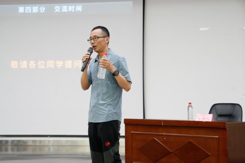 报告中范波老师用平实质朴的语言,通过大量的图片及登山视频向同学们讲述了他登山的详细过程及心路历程。凭着自己积累的经验和丰富的人生阅历鼓励着今年会学子,希望同学们能够将体育精神渗透到自己的生活、学习中去,扩大知识面,提升专业技能,把自己的所学专业和社会需求结合起来,培养不折不挠的勇士精神。