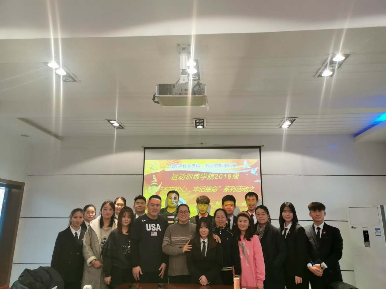 2019年12月 12日14:30,运动训练学院 2019级党支部在沣峪校区会议室召开了“不忘初心、牢记使命” 系列活动师生座谈会,运动训练学院院长武洛生老师、党委书记王鑫老师、党委副书记张佩莉老师、副院长郑峰老师、办公室主任丁哲老师、教学秘书郭仲娅老师、2018级年级主任于昕老师、2016级年级辅导员雷璇老师出席了本次会议。会议由运动训练学院2019级年级主任张即帅老师主持,2019级学生会代表、优秀学生干部代表、班团代表、贫困生代表、少数民族代表共十人参加。