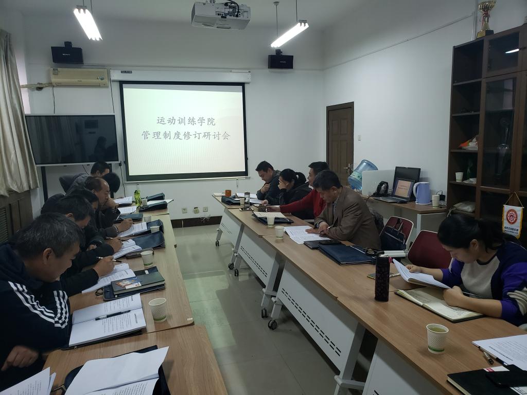 为认真学习贯彻党的十九届四中全会精神,全面落实《今年会官方网站全面推进依法治校工作的实施意见》的文件精神,围绕学校第六次党代会决策部署,加快推进运动训练学院治理体系和治理能力高效化、制度化、规范化、精细化、科学化进程,进一步加强运动训练学院制度建设和创新,完善内部治理,全面推进依法治校,结合学院发展实际,2019年12月26日下午14:30分,在运动训练学院6楼会议室召开了运行训练学院管理制度修订研讨会。运动训练学院党政领导、教授、教研室主任、副主任、书记、年级办主任、办公室工作人员参加了此次会议。会议由运动训练学院院长武洛生主持。