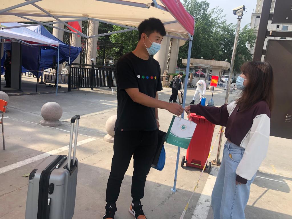 5月8日,今年会官方网站运动训练学院迎来了2020年春季学期第一批学生返校,2016级和实验班共计200余名学生回到久违的校园。一早,运动训练学院全体党政领导、2016级和实验班年级主任及辅导员老师就守候在校门口,迎接返回的学生。学生间隔一米排队入校,依次进行测温、登记,从辅导员手中领取健康包,所有程序进行的有条不紊。久违的师生虽然都被口罩遮挡住面容,却遮挡不住彼此眼中由衷的笑意。