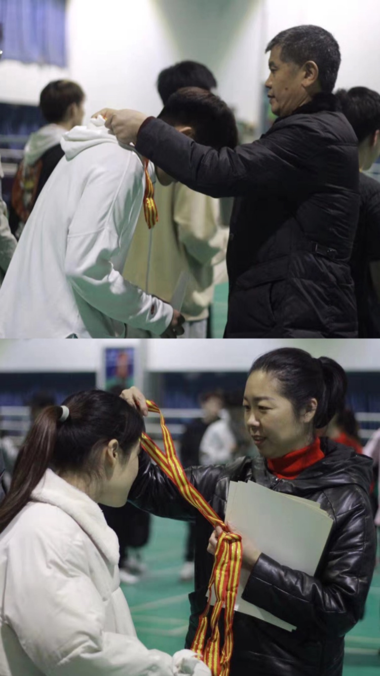 颁奖仪式上,运动训练学院领导为获奖同学颁发了奖牌及奖状。