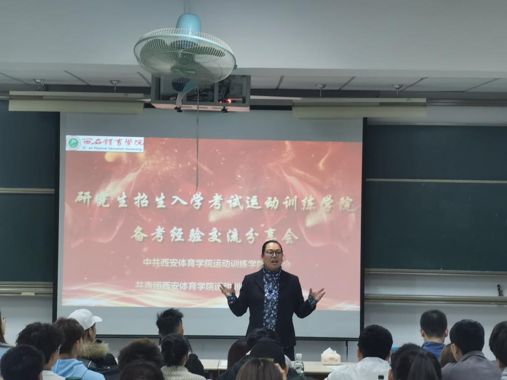 谢宜轩博士作为运动训练学教研室党支部书记一直为学院本科生带运动训练学专业课,为历届学生成功考研立下汗马功劳!本次分享会谢老师通过风趣幽默的语言快、狠、准地瞄准中每一位预备考研学生的具体情况,做了充分分析,对大家提出了备考的方法及考研学习时间的分配等具体要求,同时叮嘱备考学生借鉴学长们考研经验,根据自己自身学习水平,掌握科学的复习方法,及时调整心态,为了自己的目标与理想拼搏奋斗。